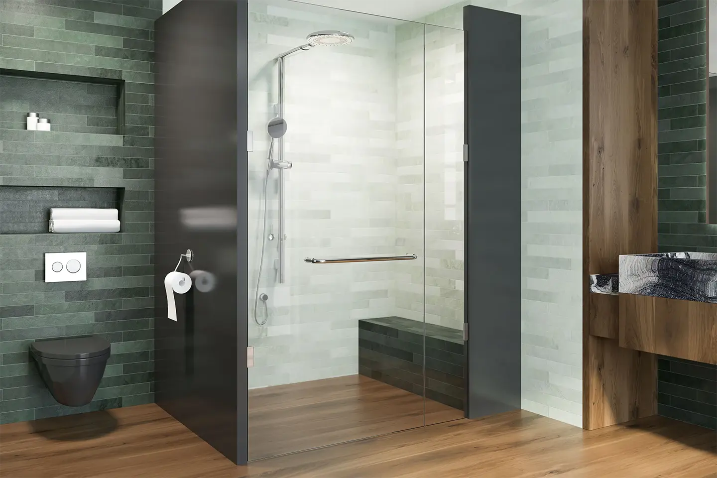 Ein Badezimmer kann viel mehr sein als nur ein Ort zum Waschen. Wir möchten, dass Sie sich gerne in Ihrem Bad aufhalten. Deshalb planen, organisieren und montieren wir – ganz nach Ihren Wünschen. Vom Gäste-WC bis zum Familienbad.